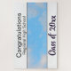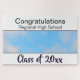 Design description: A horizontal design, with a white rectangle band along the top and bottom. The top band has a black bottom border, the bottom band has a black top border. Between the bands is a horizontal space for your photo. The top band has a two-lane text template. The top text template reads, "Congratulations." The second line of template text has space for a student name, school name or other text. The bottom band has the words Class of, then a template for the year.