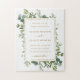 Este quebra-cabeça de convite para o casamento apresenta uma cor d'água pintada de verde eucalipto, folhas verdes e uma estrutura retangular dourada. Para personalização mais avançada deste design, clique no link "Personalizar mais". Itens correspondentes também estão disponíveis.