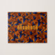 Esta divertida quebra-cabeça de campo de basquete, com o tema do quebra-cabeça, apresenta basquetes de tamanhos variados que se transformam de uma forma em 3D - dois painéis em cada basquete foram recoloridos - um azul e um laranja - imagem de fundo é um grupo de bolas de basquete que você pode ver entre as bolas de basquete padronizadas - personalizar com o nome do atleta - por katz_d_zynes