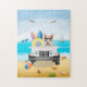 Um carro de corgi na praia é uma ideia perfeita para alguém que ama essa raça de cachorro.