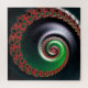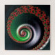 Este trabalho apresenta um padrão fractal robusto e complexo com uma estrutura espiral que parece estender-se infinitamente para dentro. As cores primárias são vermelho vívido e verde esbranquiçado, contrastando com um fundo escuro e profundo. Ao longo do caminho da espiral, formas frtais intrincadas e menores repetem-se, criando uma sensação de profundidade e movimento. Os elementos fractais vermelhos parecem formas orgânicas, quase como flores florescentes ou folhas enroladas. Os tons verdes gradualmente transitam para as brancas prateadas mais perto do centro, adicionando um efeito brilhante. No geral, a imagem evoca um sentimento de infinita complexidade e energia dinâmica.