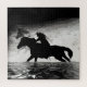 Um cavalo e cavaleiro está cavalgando em uma tempestade com os cavalos espíritos liderando o caminho, mostrando-lhe o caminho para a segurança.