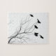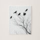 Corvos brancos e negros inspirados na natureza superam a árvore em um quebra-cabeça divertido.