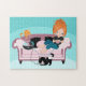 Uma Adorável Cartoon De Quebra-cabeça De 11" x 14" De Uma Senhora E Seus Gatos Se Mantendo.