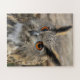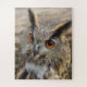 Coruja de águia bonita olhando para a câmera com seus grandes olhos brilhantes. Conheci um belo pássaro de presa num falcoer e recebi permissão para fotografá-lo. Foto original do trabalho de arte de Marion. Você pode personalizar o design ou transferi-lo para outro produto! Altere o tamanho, adicione texto e muito mais!
