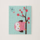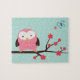 A ilustração bonito de uma coruja empoleirou-se em uma árvore de cereja.
