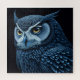 Ai arte retratando uma coruja majestosa azul-serena e negra com o fundo do céu noturno.