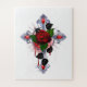 Quebra-cabeça Cruz de Prata com Rosa vermelha