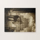 Um elefante sagrado cumprimenta os peregrinos na entrada de um templo Hindu. (Tirupati, India) esta fotografia vintage-tratada é muito detalhada, e limite ser um desafio para amantes do quebra-cabeça.