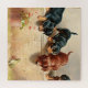 Quebra-cabeça Curioso Dachshund Puppies e um Sapo, pintura