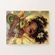 An adorable African-American anime fairy holding her chibi baby dragon personalized puzzle.