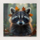 Um guaxinim adorável sentado numa floresta no outono cobriu Folhas quebra-cabeça para te dar horas de diversão montando essa beleza!