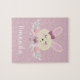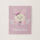 Este design quebra-cabeça, giro e personalizável, para raparigas apresenta um belo coelho adormecido com flores e fundo púrpura lilás. Sinta-se livre para personalizar o nome. Este será um presente perfeito e personalizado para uma aniversariante ou presente de Natal. Para design mais parecida, visite a loja.