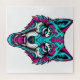 Quebra-cabeça Cyberpunk Neon Wolf - Synthwave Robotic Animal