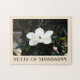 Quebra-cabeça - caracterizando uma flor da magnólia e um "estado de Mississippi". Quebra-cabeça apropriado para moldar se desejado.