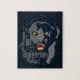 Quebra-cabeça preto com um desenho do vetor de uma pantera, com texto dizendo "eu sou perigoso"