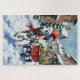 Quebra-cabeça Dalmatian Delivering Toys in Christmas Wagon Hat
