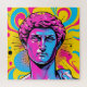 'A vibrant and colorful reinterpretation of the Statue of David, infused with 1980's pop art aesthetics. The statue is adorned with bold neon colors, geometric patterns, and playful graphic elements, set against a backdrop of abstract shapes and energetic splashes of color. The scene exudes a sense of nostalgia, with elements like cassette tapes and retro sunglasses subtly integrated into the composition, creating a lively and dynamic atmosphere.'