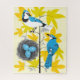 Um par de jays azuis tende seu ninho em um Maple Norueguês de folhas amarelas.