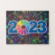 quebra-cabeça de 2023 com uma brilhante exposição de fogos de artifício e a data de 2023.