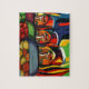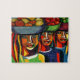 Esta quebra-cabeça personalizada de serra mostra uma pintura aquosa de três mulheres africanas celebrando sua herança cultural.