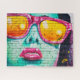 Esta quebra-cabeça de serra divertida mostra uma mulher no estilo 90s de grafite de vintage.