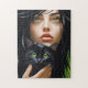 QUEBRA-CABEÇA DE ARTE DE MENINA E GATO