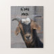 Desafiando quebra-cabeça com uma cabra sorridente e citando "companheiro de dia G".