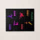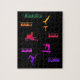 Quebra-cabeça de ginástica - Cofre, Bares, Feixe, Chão - design multicolorido com silhuetas de ginástica por toda parte, além de personalizar este quebra-cabeça de ginástica com o nome do seu ginasta!