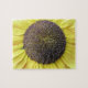 Esta quebra-cabeça espetacular mostra uma fotografia detalhada de um girassol amarelo bonito. A fotografia foi tirada usando macrofotografia e mostra um belo contraste entre as pétalas amarelas pálidas e a grande cabeça de semente central escura da flor.