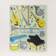 Os instrumentos musicais e notas populares permitem um quebra-cabeça divertido desenhado em tons de azul, amarelo, preto, branco e cinza.