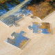 Quebra-cabeça de jogo mostrado com uma impressão de fotografia de uma bela cena de lago montanhês. Personalize este item ou comprar como está. Imagem do stock