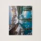 Esta quebra-cabeça de jogo é mostrada com uma impressão de fotografia de uma bela cena de inverno nas montanhas. Personalize este item ou comprar como está. Imagem do stock