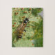 Esta quebra-cabeça espetacular mostra uma fotografia de uma mosca preta e amarela numa folha hollyhock. A foto foi tirada usando macro fotografia para revelar todos os pequenos detalhes como as veias-folha no hollyhock e o padrão nas asas da mosca-do-mar.
