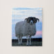 Uma fotografia de uma ovelha contra um céu lindo em tons de pínus e blues