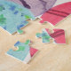 Ovos de Páscoa coloridos, em aquarela, com texto, são impressos em quebra-cabeça personalizados. O texto diz, Felz pascoa, e também pode ser facilmente personalizado com seu texto na forma modelo. Há diferentes designs pintados em cada forma de ovo. Obrigado por comprar em CherylsArt no Zazzle.