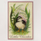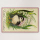 Quebra-cabeça de criança com um pássaro preto num anel de flores. As peças são grandes e fáceis para crianças pequenas.