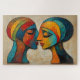 pintura abstrato de casal com rostos estilizados de cor vívida. Arte contemporânea com uma composição texturizada e dinâmica.