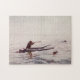 Este quebra-cabeça de serra de vaivém caracteriza um gráfico do vintage de um caçador do pato em seu caiaque. Um grande presente para o desportista ávido que ama unir dois e dois!
