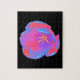 Esta quebra-cabeça espetacular mostra uma bela fotografia de uma tulipa. A fotografia foi colorida artificialmente, resultando numa tulipa fluorescente. As pétalas exteriores são coloridas com tons azuis e vermelhos, enquanto as pétalas interiores apresentam tons de rosa e roxo. O centro da flor é amarelo claro. O simples fundo preto mostra a beleza impressionante desta flor.
