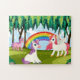 Quebra-cabeça de jogo mostrado com um impressão de cartoon de unicórnios fofos. Personalize este item ou comprar como está. Imagem do stock vecteezy.com
