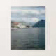 Uma bela vista panorâmica da aldeia de Perast no Montenegro impressa em um quebra-cabeça.