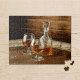 Quebra-cabeça de um decantador cheio de uísque e óculos sentados em uma mesa rústica de madeira. Escolha entre os diferentes tamanhos disponíveis.