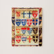 vintage art with painting of coat of arms and early roll of arms belonging to the society of antiquaries of london with various coat of arms.