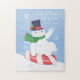 Junte esta cena do inverno! Um boneco de neve derruba uma colina embalada em pó em uma menta de pimenta vermelha e branca. Aproveite este quebra-cabeça de ano em um dentro de inverno aconchegante ou, "Deixe nevar" em uma tarde de verão lenta!