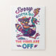 Design vibrante e colorido com um desenho animado que veste um chapéu de vaqueiro que solta um quadrinista de desenho animado. O texto colorido diz: "Desculpe, mas as vibrações estão apagadas". Esse design está disponível em uma grande variedade de produtos.