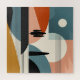 Uma paisagem abstrato de uma cena do deserto com linhas e formas em tons de marrom, laranja, turquesa, bege, bronzeado e preto.
