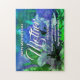 QUEBRA-CABEÇA na moda floral HAPPY DIA DE AS MÃES JIGSAW projetado com imagem bougainvillea azul verde e um extrato baseado no Proverbs 31. O texto é PERSONALIZÁVEL para que você possa adaptar-se às suas próprias necessidades. Esta é parte da Coleção de DIAS DE AS MÃES, onde estão disponíveis outras cores e itens correspondentes.