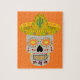 Este incrível quebra-cabeça apresenta uma imagem design gráfica de um Dia Mexicano dos Mortos (Dia de los Muertos) inspirado no crânio. O crânio é uma cinza pálida e está vestindo um sombrero amarelo. Ela tem dentes de ouro e girassóis mexicanos, também chamados de titonias em vez de olhos. O sombrero tem um cacto e está coberto por padrões de espiral bonito e pimentões-do-sul e vermelhos. O próprio crânio está coberto por flores bonito e coloridas de diferentes tipos.