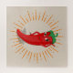 Pimenta vermelha de pimenta quente com estilo de desenho animado, que se posiciona em frente a um desenho de explosão solar estilo vintage. Dar uma ideia para pessoas que adoram comidas picantes.